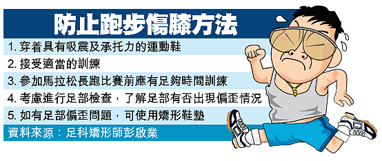 ![]() 2003年12月05日 【蘋果專訊】 矯形鞋墊可減壓 及早揀適當鞋子 近年愈來愈多人喜愛參加馬拉松賽事,或以跑步及行山來鍛煉身體,但足科矯形師提醒市民,若足部有偏歪問題,長期跑步、行山或走路都有機會出現足部、膝部關節痛,甚至危及腰部;市民可透過儀器檢查足部和膝部,藉以防患於未然。 香港足科矯形學會副會長吳燕玲表示,愈來愈多人發現足底痛、膝痛,甚至腰痛,原來是由足部偏歪引致。她解釋,足部位置正常,乃指當足踝處於中立位置時,前足與足跟的平面都相稱,如以垂直線來量度,人體的小腿與足跟成直線,即足部沒有偏歪,但若小腿與足跟的角度偏歪超過四度,以成人來說,足部已有偏歪問題。 本港並無足部偏歪比率的數據,外國數字顯示,約六至七成人都有不同程度的足部偏歪問題,但並不等於全部都會出現痛症。最常見因足部偏歪而導致的痛症,包括足底筋膜炎、足跟痛、蹠骨痛、拇趾囊腫、膝關節痛及腰痛等。 足科矯形師彭啟業說,根據求診者的分類,與足部偏歪引致的痛症,最常見是膝痛,有兩成求診者因足部偏歪而出現膝痛,一成八人後腳跟痛、一成半人有大拇趾外翻問題;而在膝痛的病人中,半數是退化性膝關節炎,餘下則是經常運動人士。 工展會免費足部檢查 他指出,長期跑步有機會傷及膝蓋,出現膝內側或前膝痛楚,尤其是足部偏歪人士機會較大,所以經常跑步或跑馬拉松,應穿有具承托力及避震的運動鞋,如要參加比賽,則至少在比賽前四個月作循序漸進訓練,不能臨急抱佛腳,否則很易過度勞損。 吳燕玲表示,有足部偏歪問題可以透過矯形鞋墊予以矯正,減輕足部或膝部的壓力,走路及跑步時足部可平均地用力,也可鍛煉肌肉,減少痛楚。即使市民沒有痛症,也可及早選用適當鞋子,防患於未然。 該學會近期首創一部三合一的足部檢查儀器,透過一個聰明檢查台上的鏡頭,全方位偵察患者膝蓋及腳跟的偏歪情況,並有一套壓力感應系統,測試患者走路時足底壓力分布,立體呈現患者足患成因。該會在下周舉行的工展會免費為市民進行全方位足部檢查,但要先行預約,查詢電話23329375。 記者:梁洵瑜