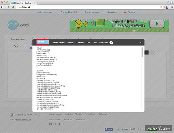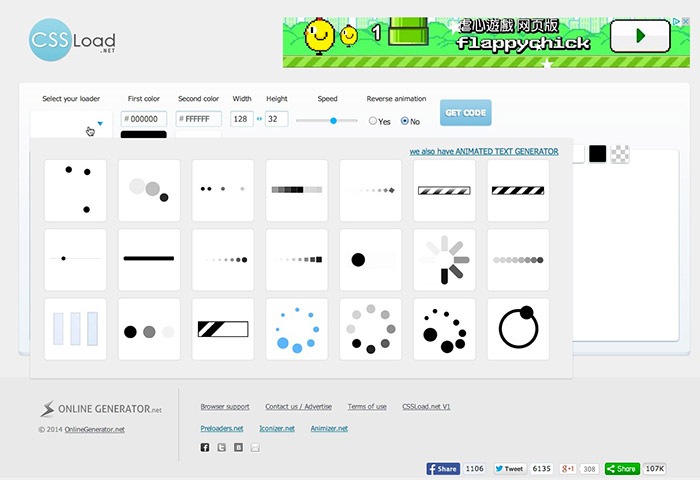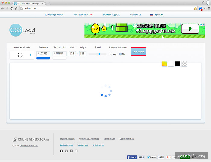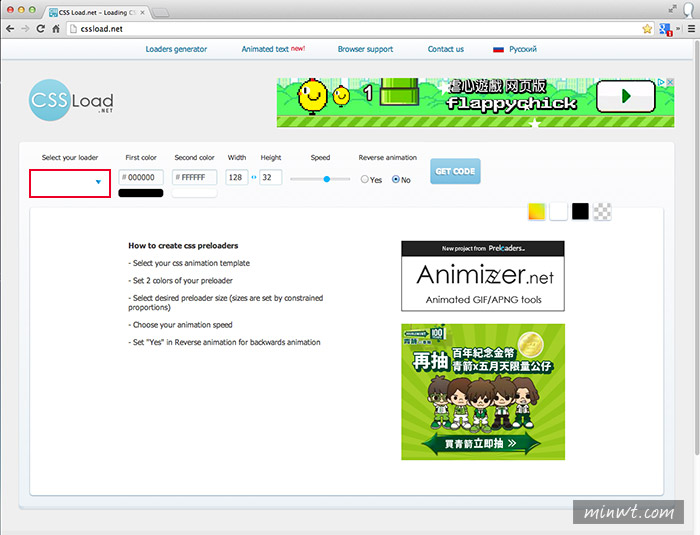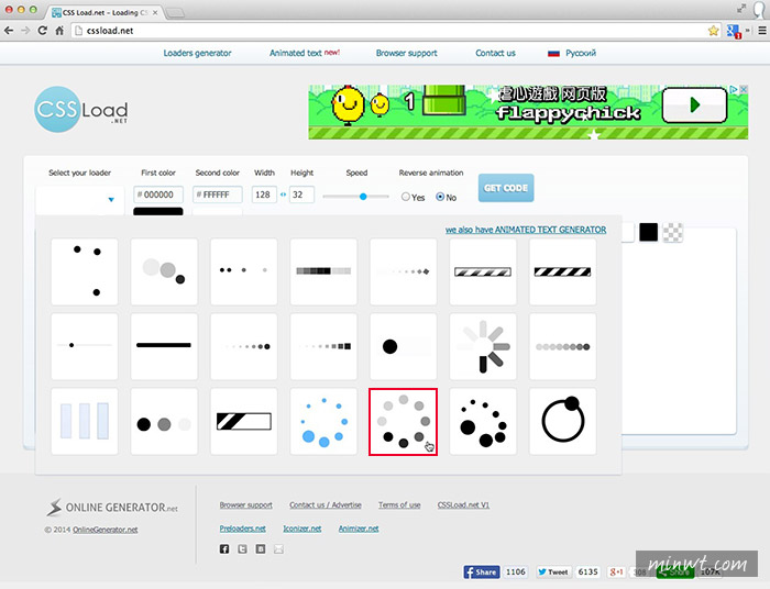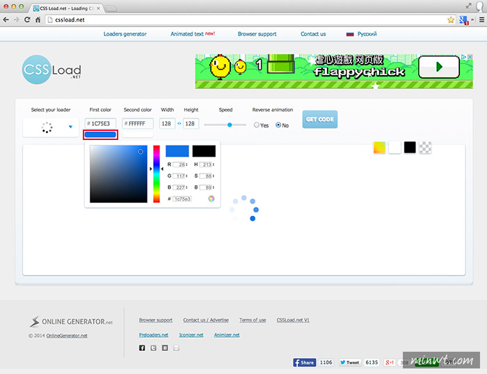 透過上方的控制選項,就可改變Loading圖示的顏色、大小、速度、背景色…..等。